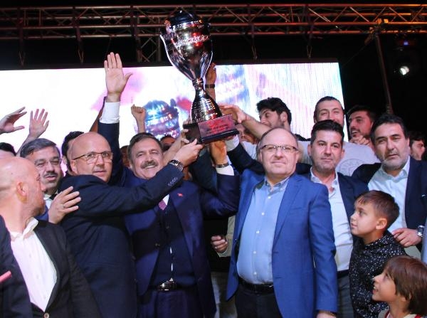 Konuşmaların ardından Afyon Belediyespor Kulüp Başkanı Hüseyin Çetinbaş, şampiyonluk kupasını Bakan Eroğlu'na verdi. Bakan Eroğlu da Vali Tutulmaz, Başkan Çoban, protokol üyeleri, basketbolcular, yönetim kurulu üyeleri ve teknik heyetle birlikte kupayı havaya kaldırarak şampiyonluğu kutladı. Bakan Eroğlu o kutlama anlarını kendi cep telefonuyla da görüntüledi. Bakan Eroğlu, basketbolcularla da özçekim yaptı. Kutlamalar gecenin ilerleyen saatlerine kadar coşkuyla devam etti.