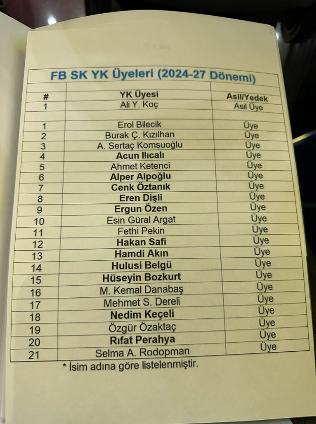 Ali Koç, 21 kişilik yönetim listesini açıkladı.