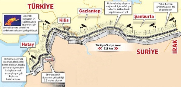 Türkiye’den Suriye’ye DEAŞ'ın sızmalarının ve kaçak geçişlerin bir türlü önlenememesi üzerine, sınır hattında 3.5 metrelik duvar çekme kararı alındı.