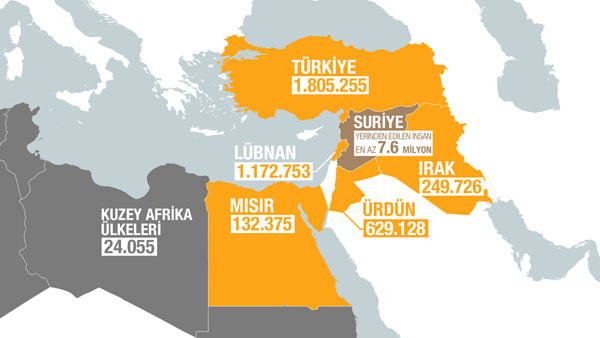 Suriye'de ülke içinde yerinden edilenlerin sayısının da en az 7,6 milyon olduğu ifade edildi.
