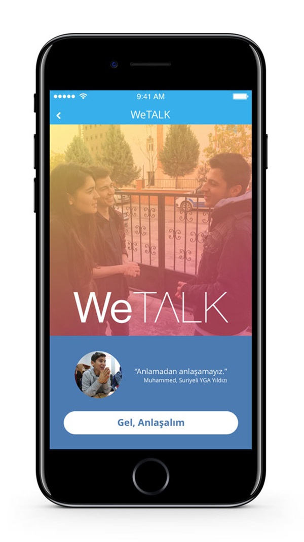 “Suriyeliler için değil, Suriyeliler ile Birlikte” projesi kapsamında yürütülen saha çalışmalarında Suriyeli göçmenlerin sosyal hayat içerisinde yaşadıkları öncelikli sorunlardan birinin dil sorunu olduğunu tespit eden YGA gönüllüsü Suriyeli üniversite öğrencileri, sosyal inovasyon projesine bu sorunun üstesinden gelmek amacıyla yoğunlaştı. Böylece çalışmanın ilk ürünü olan ‘WeTalk’ teknolojisi ortaya çıktı. Akıllı telefonlara yüklenen tercüme uygulaması sesli ve yazılı mesajları anında Türkçe -Arapça dillerine çevirerek tarafların anlaşmasını ve sohbet etmesini mümkün kılıyor.