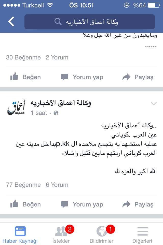 Islahhaber’de yer alan habere göre; IŞİD, resmi Twitter hesabında olayı üstlenmediğini açıklayan mesajlar yayınladı. IŞİD’in yayın organlarından olan Amaq Haber Ajansı tarafından yapılan açıklamada ise, IŞİD’in dün gece Kobani’de gündüz vakti gerçekleştirdikleri canlı bomba saldırısını üstlenen bir açıklama yayınladı. Ancak Suruç’ta yaşanan bombalı saldırı ise üstlenilmedi.