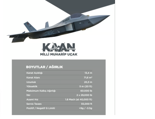 Türkiye'nin beşinci nesil savaş uçağı Milli Muharip Kaan'ın broşürü güncellendi. Uçağın teknik boyutlarındaki bazı değişiklikler dikkat çekti.