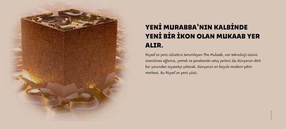 Suudi Arabistan'ın yeni projesi Müslümanların büyük tepkisini çekti. Ilımlı İslamcı Veliaht Prens Muhammed bin Selman yaptığı açıklamada, Murabba isimli projesini duyurarak başkent Riyad'a 'Mukaab' isimli küp bir bina grubu kuracaklarını bildirdi.