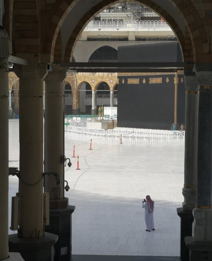 Suudi Arabistan yönetimi, Kabe'ye girişi kapattı. Etrafı ilk kez bu kadar sakin görünen Kabe, ilaçlama çalışmalarının ardından tekrar açılacak.