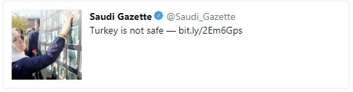 Bu bağlamda sosyal medyada Türkiye aleyhinde algı operasyonuna başlayan Suudlar Saudi Gazette adlı yayın organından 2 paragraflık bir metin yayına verdiler. Metnin başlığı "Turkey is not safe" yani, "Türkiye güvenli değil" şeklinde atıldı.