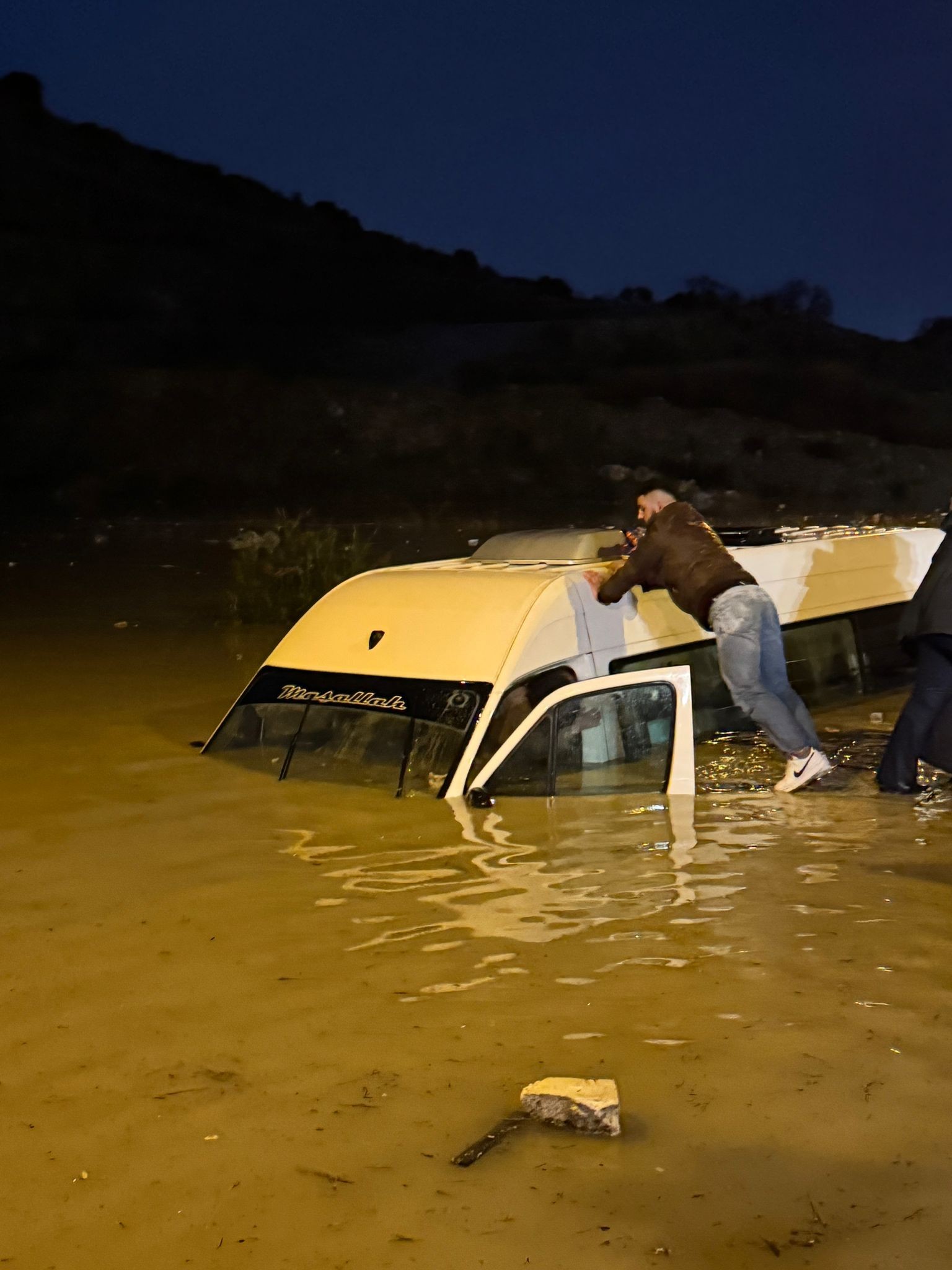 Motoru arızalanan minibüs hareket edemezken bir süre sonra yağmur suyu içeriye dolmaya başladı. Yarısından fazlası suya gömülen ve içerisinde 20 kişinin bulunduğu minibüstekiler 112 Acil Çağrı Merkezini arayarak yardım istedi.