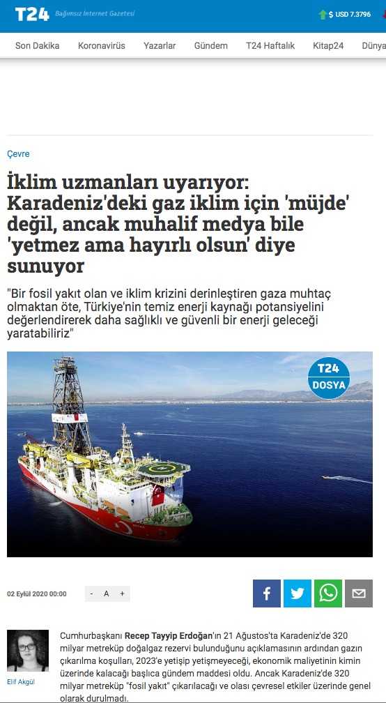 Dünya genelindeki doğalgaz rezervinin binde biri bile olmayan Türkiye'nin bulduğu rezerv için ‘iklimi bozacak’ diye kötülemeler yapan T24 sitesinin haberi ‘Bu kadar da düşmanlık olmaz’ dedirtti.