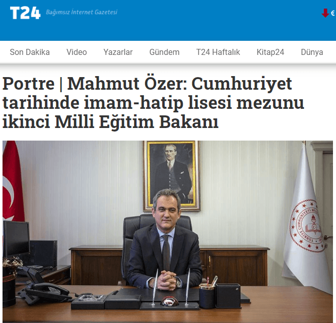 T24, Milli Eğitim Bakanlığı'na atanan Mahmut Özer'in geçmişini yazdığı haberde, İmam hatiplere olan düşmanlığını gün yüzüne çıkarttı. İlgili haberde, geçmişi başarılarla dolu Bakan Özer için, 'Cumhuriyet tarihinde imam-hatip lisesi mezunu ikinci Milli Eğitim Bakanı' ifadesi ön plana çıkartıldı.