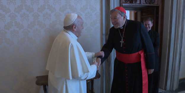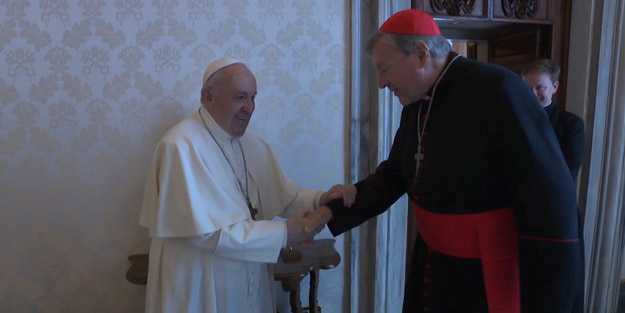 Kardinal Pell, 3 yıl aradan sonra ilk kez Vatikan’da, Papa Francis ile bir araya geldi. Vatikan ofisinden görüşmeye dair gelen fotoğraflarda ikilinin samimi pozları dikkat çekti.
