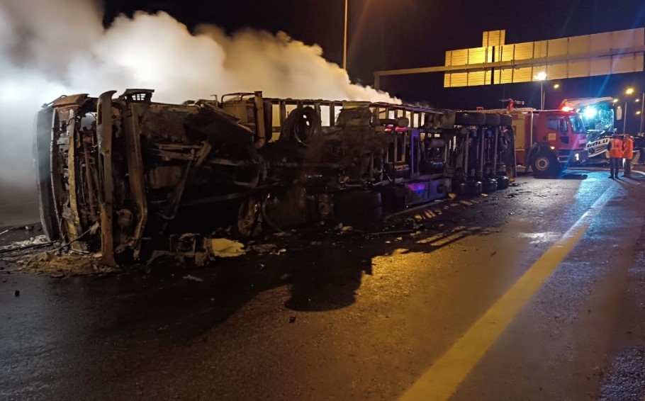 Çarpmanın etkisiyle savrulan tır da önündeki M.C. kontrolündeki 21 GC 721 plakalı otomobile çarptı. Kazanın etkisiyle tır ve otomobil alev topuna dönerken, çevredeki vatandaşların ihbarı üzerine olay yerine çok sayıda polis, jandarma, sağlık, itfaiye ve UMKE ekibi sevk edildi.