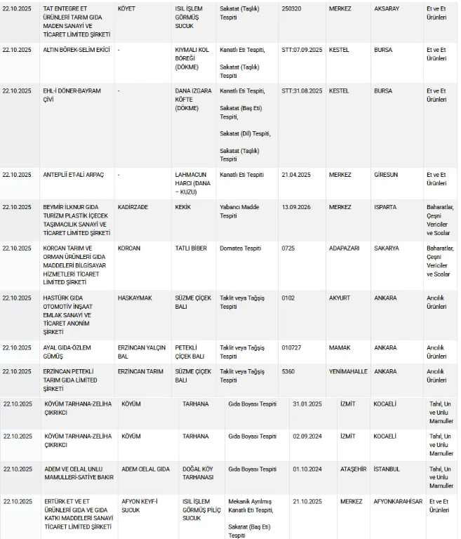 Vatandaşların sağlıklı gıdaya erişmesi için Tarım ve Orman Bakanlığı yaptığı denetimler sonrası uygunsuz olan ürünleri ifşa etmeye devam ediyor.