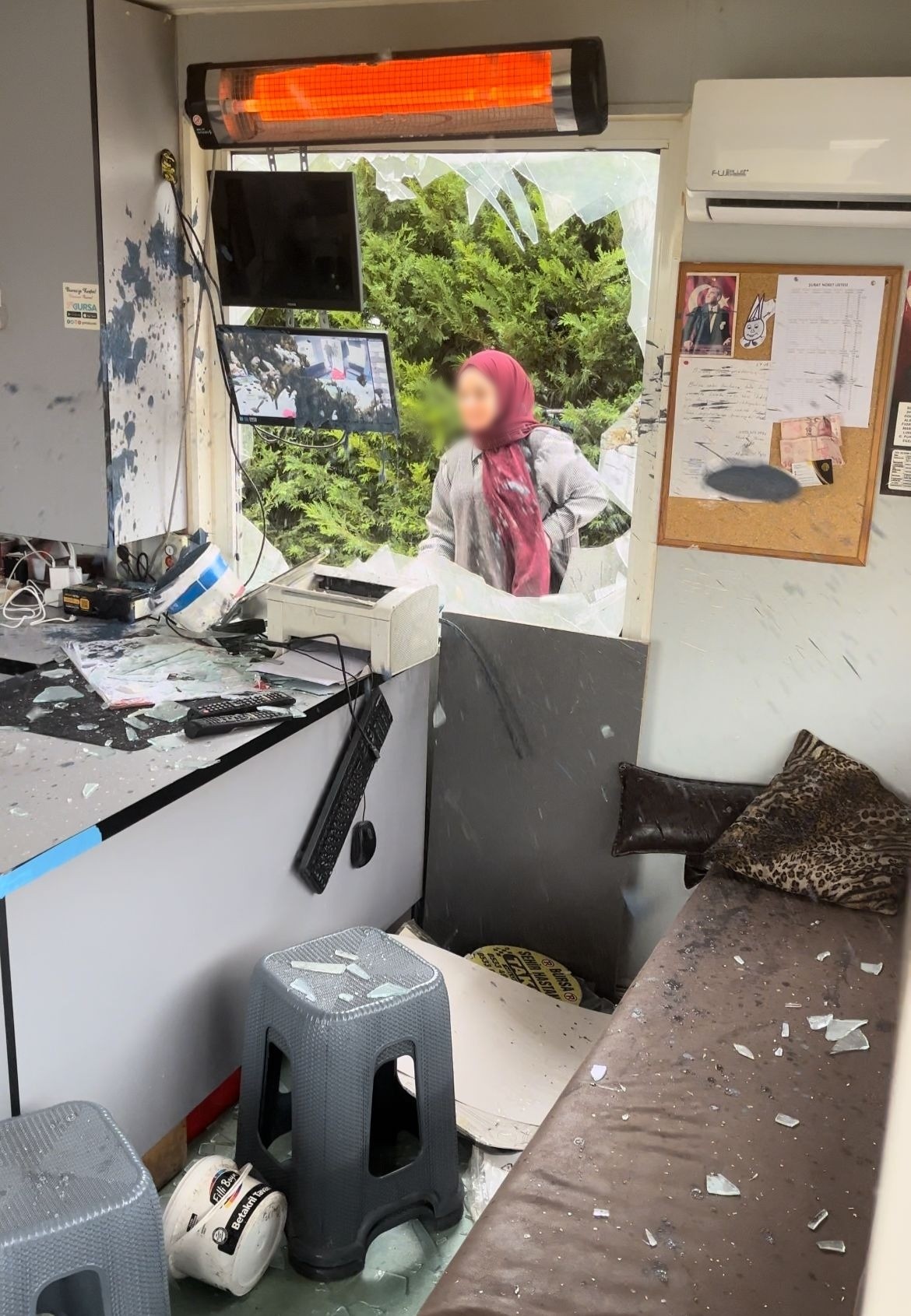 Bursa Şehir Hastanesi'nde akıllara durgunluk veren bir saldırı yaşandı. İçinde müşteri bulunan taksiye binmek isteyen ancak şoförün uyarısıyla reddedilen 32 yaşındaki S.B., adeta cinnet getirdi. Gözü dönen saldırgan, çevrede bulduğu ağır bir ayaklı küllüğü kaptığı gibi taksi durağının camlarına saldırdı. Durak camlarını yerle bir eden S.B.’nin "Taksi beni sevmiyor" şeklindeki anlamsız bağırışları çevredeki vatandaşlarda büyük şaşkınlık ve korku yarattı.