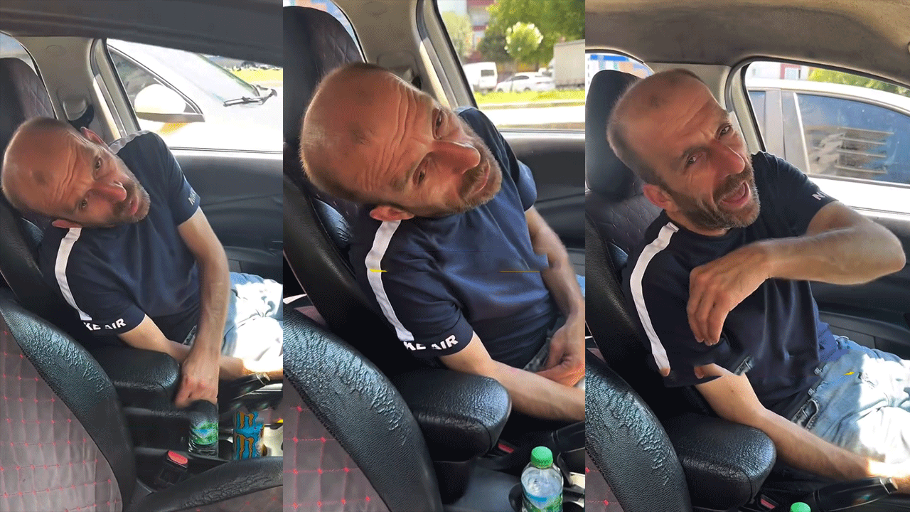 Gözünü açan taksici, tuhaf hareketler yaptıktan sonra kendisine laf atan vatandaşa cevap vermeden arabayı çalıştırarak yol çıktığı görüldü.