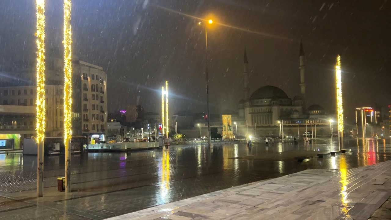 Meteoroloji Genel Müdürlüğü tarafından yapılan uyarıların ardından beklenen kar yağışı İstanbul'da etkisini göstermeye başladı. Şehrin simge noktalarından Taksim Meydanı'nda lapa lapa yağan kar, güzel görüntüler oluşturdu.