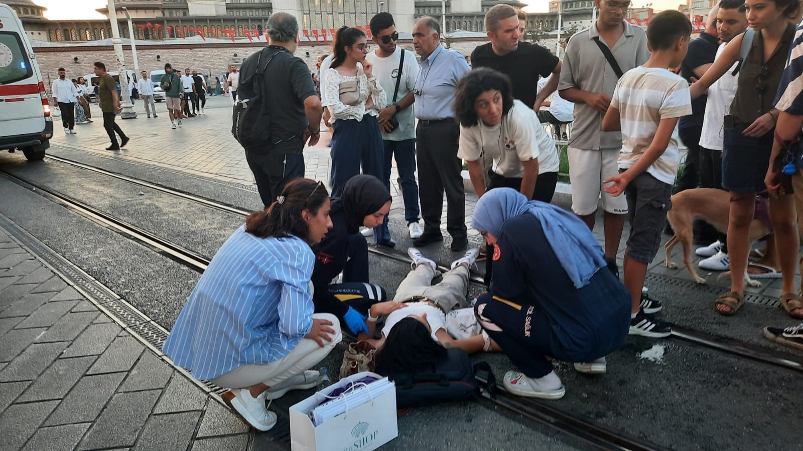 Yerli ve yabancı turistler ile trafik polisi bir anda yere yığılan kızın yardımına koştu. Bazı vatandaşlar nöbet geçiren kadının ayaklarını kaldırırken, bazıları da başının altına çanta koydu. İhbar üzerine olay yerine sağlık ekipleri sevk edildi. Epilepsi nöbeti geçiren genç kız, yapılan ilk müdahalenin ardından Taksim Eğitim ve Araştırma Hastanesi'ne kaldırılarak tedavi altına alındı. Yerli ve yabancı turistlerin duyarlı davranışları ise cep telefonu kamerasına yansıdı.