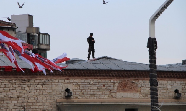 Meydanın dört bir yanında ise polis silahlı önlem aldı. Ayrıca meydanı gören yüksek binalara ise özel harekat polisleri konuşlandırıldı.