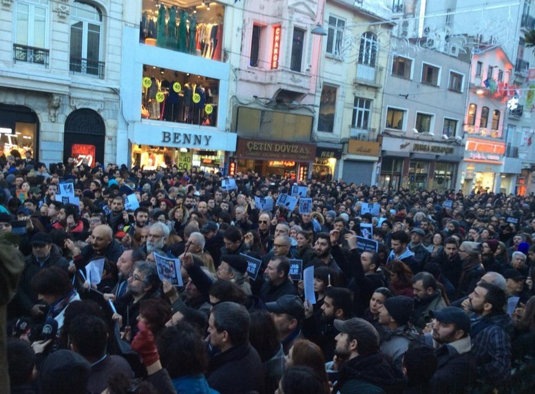 Paris'teki yürüyüşe eş zamanlı olarak Taksim'de de Fransız Konsolosluğu'na doğru yürüyüş başladı. Hepimiz Charlie'yiz pankartı eşliğinde yürüdüler. Yürüyüş sırasına iki kişi gruba tepki gösterince kavga çıktı.