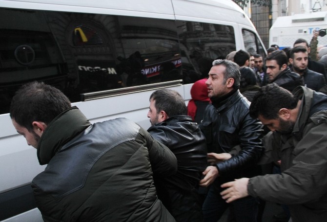 Hemen ardından bir başka kişi de gruba tepki gösterdi ancak gruptaki eylemcilerin yanıtı sert oldu. Bir eylemci, tepki gösteren şahsı yumrukladı. Polis tarafından gözaltına alınan iki kişi, ifadesi alınmak üzere karakola götürüldü.