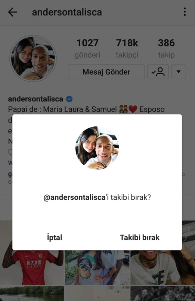 Anderson Talisca'nın takipçi sayısı kısa sürede 769 binden 718 binlere kadar düşerken takipten çıkmalar devam ediyor.