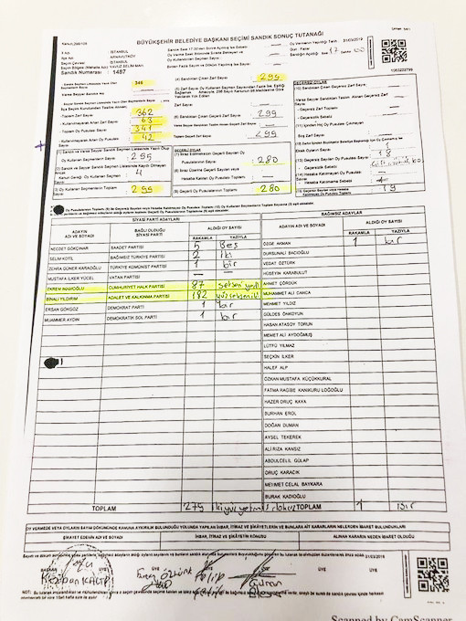 Kamu görevlisi olmayan sandık kurulu üyeleri büyükşehir seçimlerinde Ekrem İmamoğlu’nun seçimleri kazanması için hatalı işlem yaptı. Arnavutköy’de 1487 No’lu sandıkta Cumhur İttifakı adayı Binali Yıldırım’a 182, Millet İttifakı Adayı Ekrem İmamoğlu’na sadece 87 oy çıktı. Ancak sandık kurulu üyeleri iki farklı tutanak düzenledi. AK Parti müşahidine verilen sonuç tutanağından sonra bir tutanak daha düzenleyen üyeler, Binali Yıldırım’ın oyunu 1 olarak kaydetti, Ekrem İmamoğlu’na ise 182 oy yazdı. Aynı şekilde Avcılar da 1017, 1029, 1193, 1278, 1281, 1306, 2019, 2032, 2095, 2188, 2189, 2212, 2257 ve 2262 No’lu sandıklarda AK Parti’ye 401 oy eksik yazılırken, CHP’nin hanesine 15 oy fazla geçirildi. Büyük seçim yolsuzluklarından biri de Bağcılar’da yaşandı. Yine AK Partili müşahitlere verilmek üzere başka, çuvala başka koyulmak üzere iki ayrı seçim sonuç tutanağı düzenleyen sandık kurulu üyeleri 3106, 3119, 3311, 3299, 2309, 2320, 1032, 1056, 1088, 2230, 2191, 2175, 2132, 2106, 2109, 2091, 2041, 1315,4052, 4046, 4044, 3374, 3368, 4098, 4188, 4237, 4313, 4102, 4129, 2012, 1246, 1283, 3343, 2328 ve 3023 No’lu sandıklarda AK Parti’nin bin 581 oyunu çaldı.