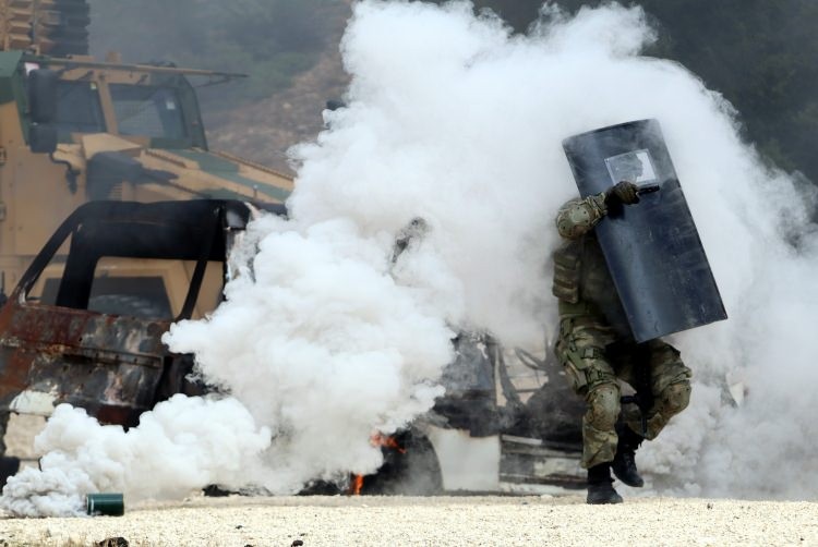 Bu eğitimlerde, ani baskın yapan ekipler önce mahalledeki belirtilen alanları adeta sise boğuyor.