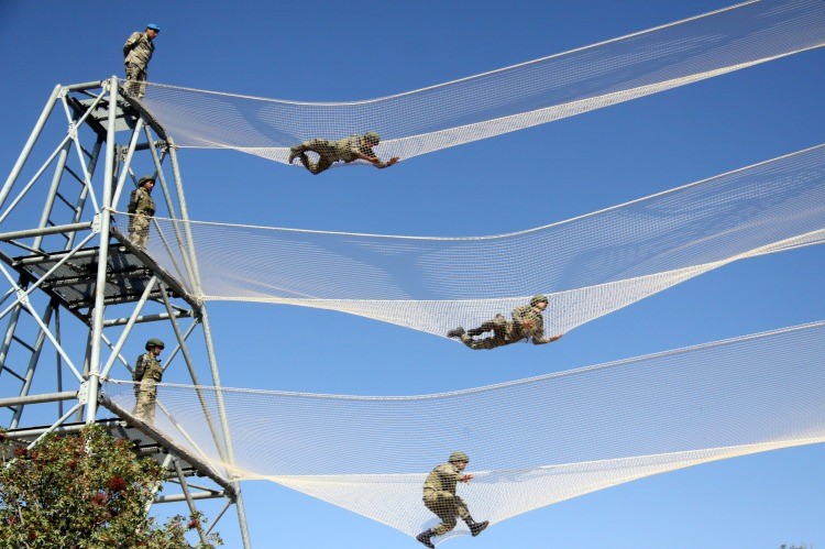 Sabahın erken saatlerinde başlayan eğitimlerde komandolar, özel engel parkurunda ise fiziki beceri ve kabiliyetlerini geliştirmek, cesaretlerini kırılmaz seviyeye getirmek amacıyla, sallanan toplar arasından dengeli ve hızlı şekilde geçiş, ahşap kuleye tırmanma ile 3 bölümden oluşan file engelinden sürünerek ve yürüyerek geçti.