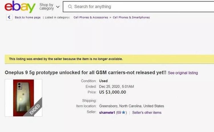 eBay'de listenen OnePlus 9 prototipini satın almak için ödenmesi beklenen fiyat ise tam 3.000 Dolardı.