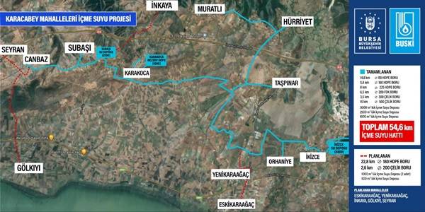 Bursa Büyükşehir Belediyesi, 17 ilçeye de ulaşım ve altyapı başta olmak üzere ihtiyaç duyulan tüm hizmetleri kazandırmaya devam ediyor. Özellikle kırsal mahalleler BUSKİ marifetiyle yapılan yatırımlarla sağlıklı ve kesintisiz içme suyuna kavuşuyor. Son olarak Karacabey ilçesinde içme suyu ihtiyacı özellikle yaz aylarında tankerlerle taşınarak veya arsenikli kuyulardan karşılanan 8 mahallenin içme suyu sorunu da tamamen çözüme kavuşmuş oldu. Yaklaşık 30,5 milyon liralık yatırımla İkizce, Orhaniye, Muratlı, Hürriyet, Taşpınar, Subaşı, Canbaz ve Karakoca mahalleleri 54 bin 600 metrelik içme suyu isale hattı ve 5.000, 2.500 ve 1000 metreküplük 3 su deposu ile sağlıklı şebeke suyuna kavuştu. Bu çalışmalara ek olarak 2022 yılında yapılacak yaklaşık 15 kilometrelik içme suyu hattı ile Eskikaraağaç, Yenikaraağaç, Gölkıyı, Seyran ve İnkaya mahallelerine de Doğancı Barajı’ndan su verilecek.