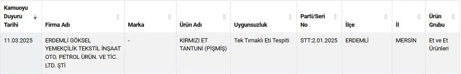 Bakanlığın yaptığı son güncellemede, Çetinkaya Et Market’in kasap köftesinde kanatlı et tespit edildi. Listenin devamında ısıl işlem görmüş piliç sucuklarda mekanik ayrılmış kanatlı et görüldü. Ayrıca piliç salam da yine kanatlı et çıktı.