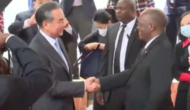 Kendisi de maske kullanmayan Magufuli, konuşmasının ardından Çinli Bakanla el sıkıştı.