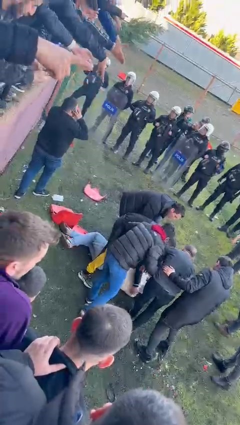 Kocaeli’de Bölgesel Amatör Lig maçında ortalık karıştı. Taraftarlar kırdıkları koltukları sahaya fırlatırken, polis ekipleri biber gazıyla müdahale etti. O anlar amatör kameralar tarafından kaydedildi.