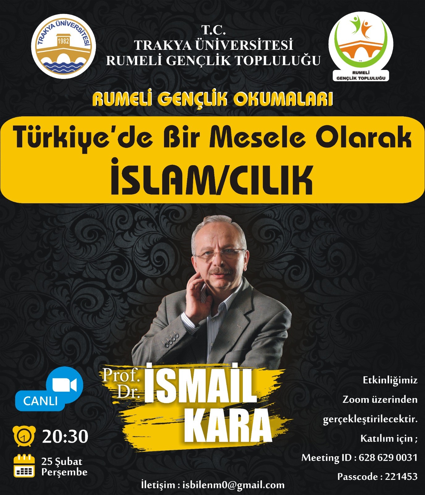 Prof. Dr. İsmail Kara’nın öncülük edeceği etkinlik 25 Şubat Perşembe saat 20:30’da yapılacak.