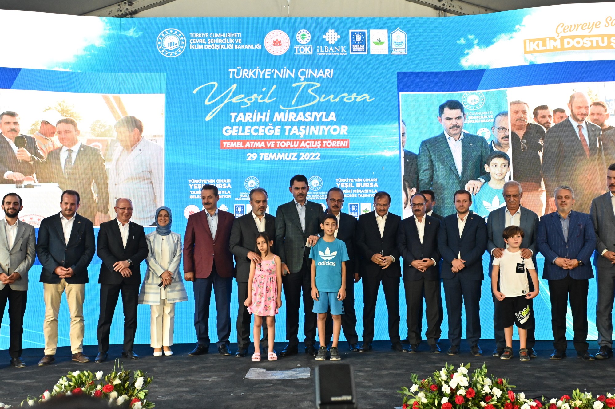 Bursalıların, Tarihi Çarşı ve Hanlar Bölgesi’nde hayata geçirilen projeyi 40 yıldır merakla ve özlemle beklediğini ifade eden Çevre Şehircilik ve İklim Değişikliği Bakanı Murat Kurum, “Burası bizim tarihimizin doğduğu yer. Burayı özel yapan üç unsur vardır. Uludağ, Ulu Cami ve Ulu çınar. Uludağ heybeti, Ulu Cami haşmeti, Ulu çınar ise hayatı temsil eder. İşte medeniyetimize can suyu veren, taşa ruh üfleyen ecdattan aldığımız ilhamla biz de bugün Hanlar Bölgesi’ndeyiz. Tüm Türkiye'de ‘tarihe vefa geçmişe saygı’ sloganı ile başlattığımız birçok projeyi yaptık. Yeşil Bursa'yı, kadim Bursa'yı büyük tarihi ile buluşturmak için ilk taşı hep birlikte yerleştireceğiz. 2 yıl önce buraya geldik ve bir söz verdik. Bursa’mıza, Türkiye'mize bir söz verdik ve bu tarihi bölgeye zarar veren binaları yıktık. İşte bu Hanlar Bölgesi'nin etrafını tamamen açtığımız bu alanda tam 500 milyon liralık bir yatırım gerçekleştirdik. Projemizde birlikte Bursa’mızın tarihi kimliğini ön plana çıkaracağız ve bu alanda bulunan Pirinç Han ve İpek Han gibi tarihi hanlarımızın görünürlüğünü artıracağız. Proje kapsamında 2000 metrekare büyüklüğünde 3 tane meydanımız olacak. 19 bin metrekare açık ve yeşil alan, yer altında da buraya gelen misafirlerimizin araçlarını park edeceği 12500 metrekarelik otoparkımız olacak. Bu da 500 araçlık otopark demektir. Vatandaşlarımızın, bu tarihi ve kültür aksında sıkılmadan, güzellikler içinde, çınarların gölgesinde gezdiği bir projeyi hayal ettik. İnşallah bugün de ilk taşımızı koyuyoruz. Biz taş üstüne taş koyanların yolundayız. Birileri gibi milletin önüne, milletin işlerine, milletin hedeflerine taş koyanlardan hiçbir zaman olmadık. İnşallah bu projemiz, geleceği bıraktığımız çocuklarımıza emanet ettiğimiz kadim değerlerin aziz hatıraları, yeni bir mihenk taşı olacaktır. Osman Gazi'nin göz nurlarına, Orhan Gazi'nin evlatlarına, Sultan Murad'ın evlatlarına şimdiden projemiz hayırlı, uğurlu, mübarek olsun” diye konuştu.