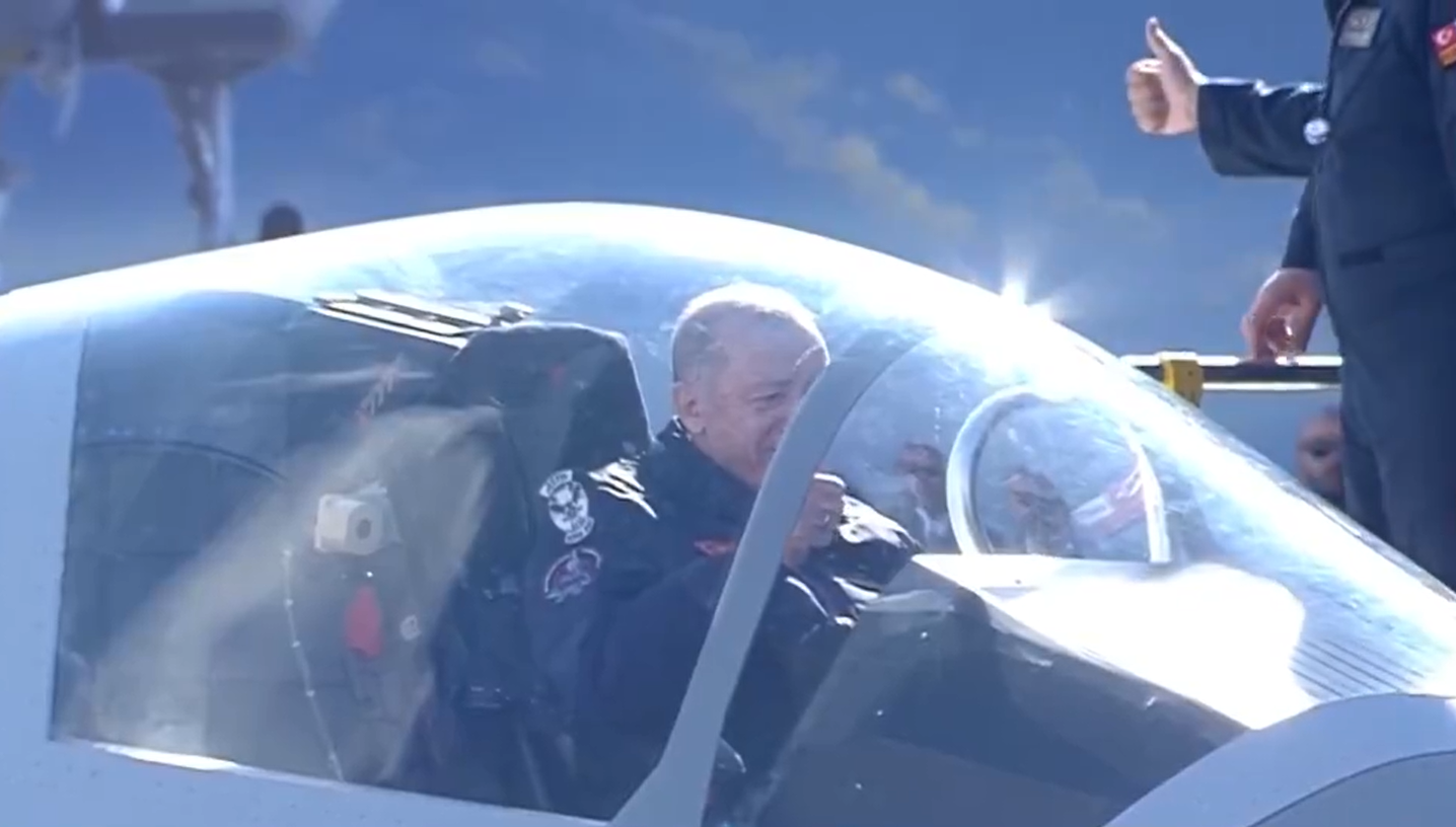 Erdoğan Türkiye'nin ilk yerli savaş uçağı Kaan'ın kokpitine oturdu.