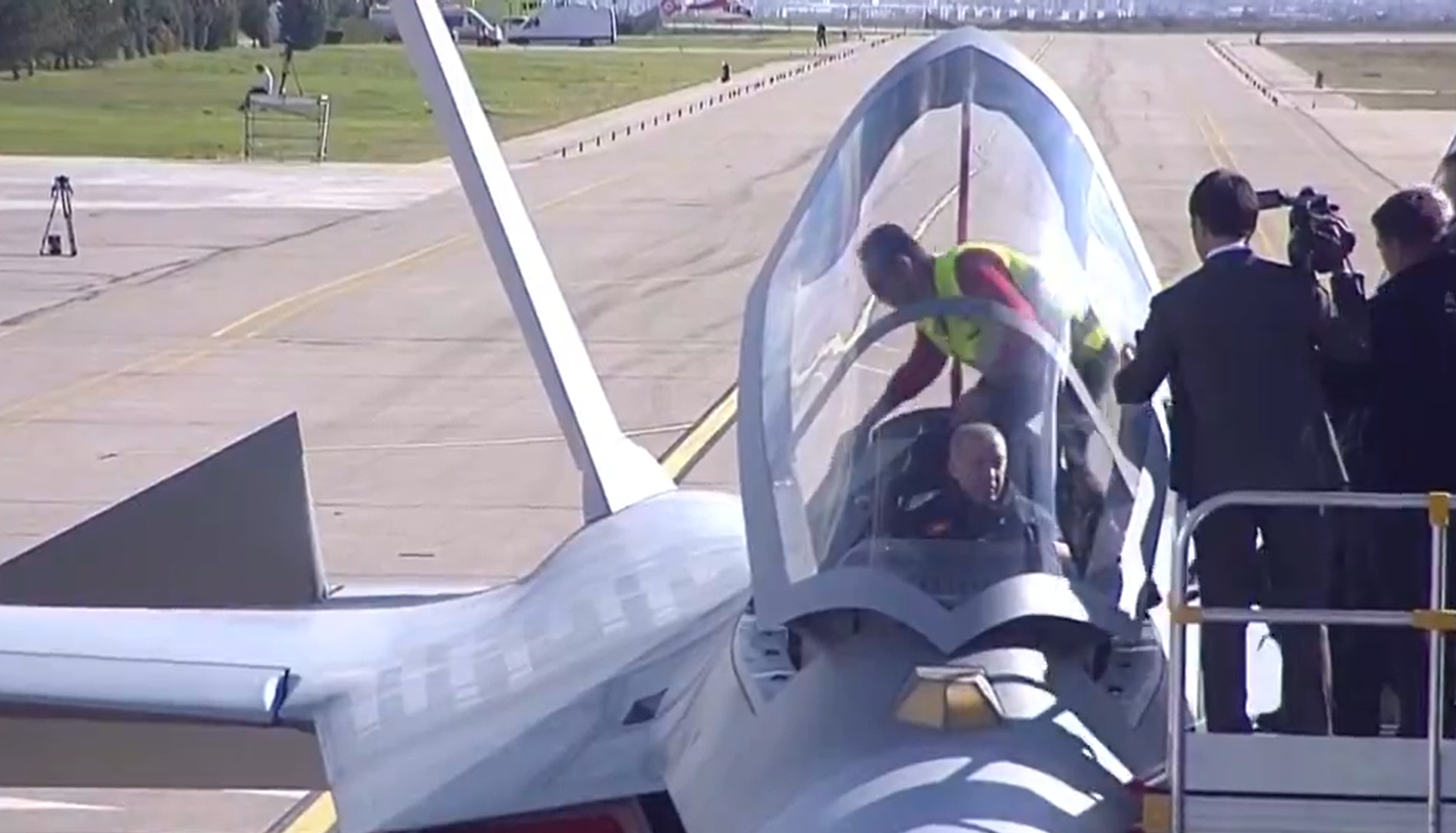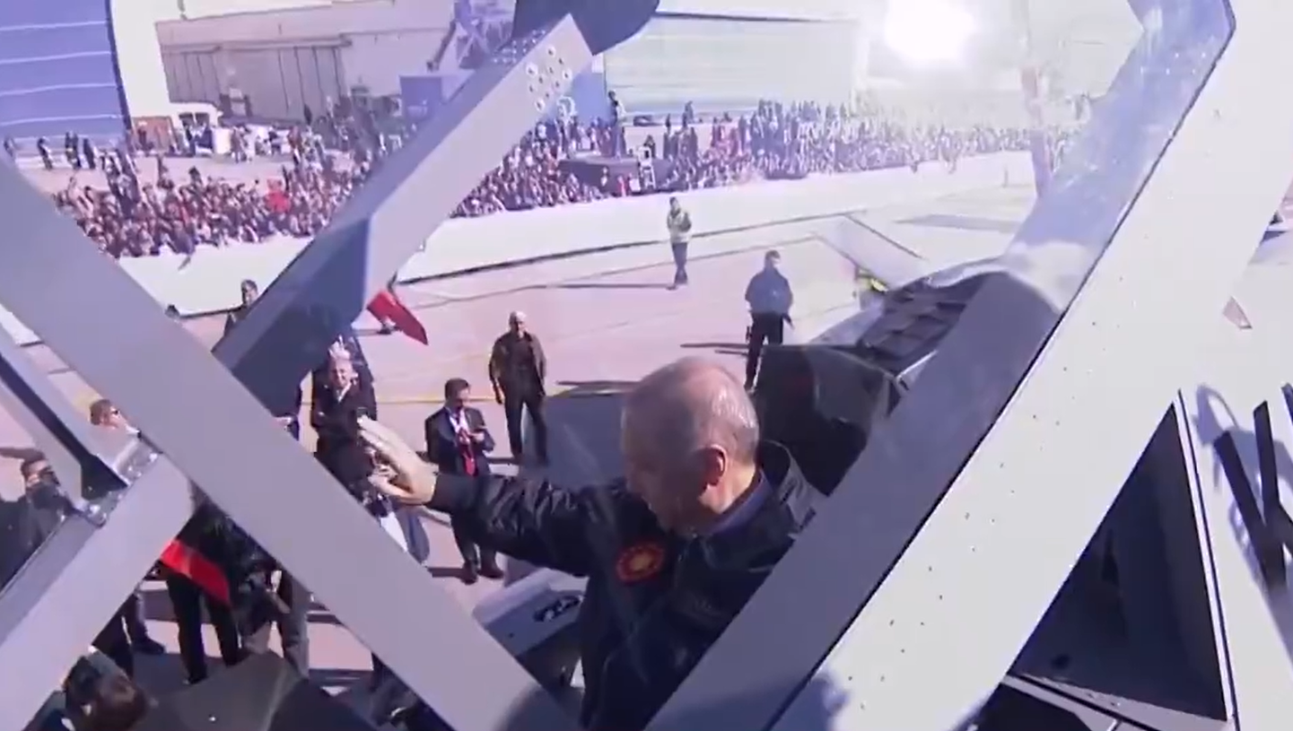 Cumhurbaşkanı Recep Tayyip Erdoğan Türkiye'nin ilk yerli savaş uçağı Kaan'ın kokpitine oturdu.