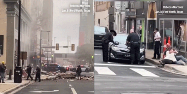 İtfaiyeciler yıkıntılar arasında yürürken Fort Worth şehir merkezinin normalde işlek olan caddelerini gri bir sis kaplamıştı. Binanın enkazı caddeye ve park halindeki araçların üzerine saçılmıştı.
