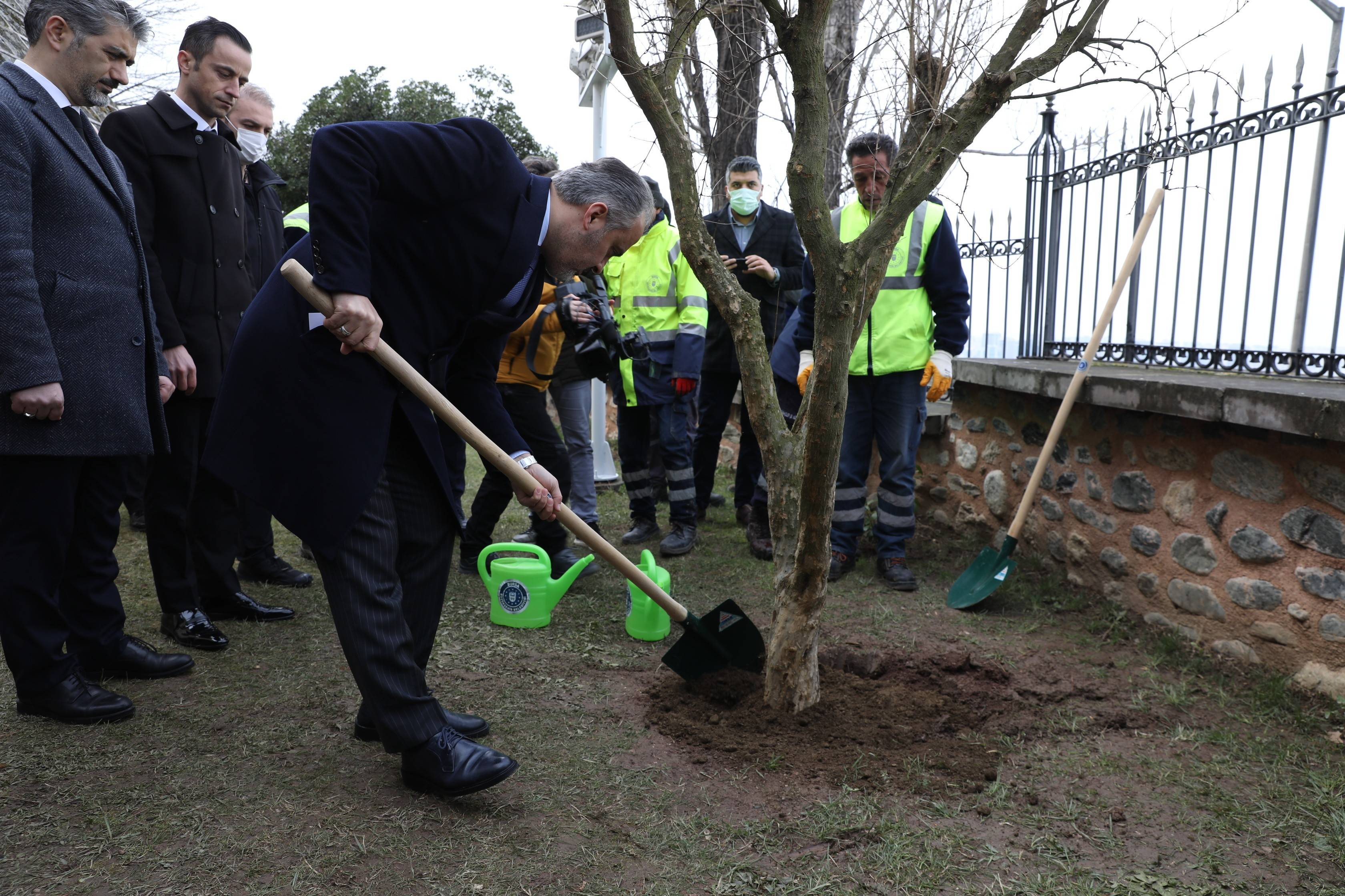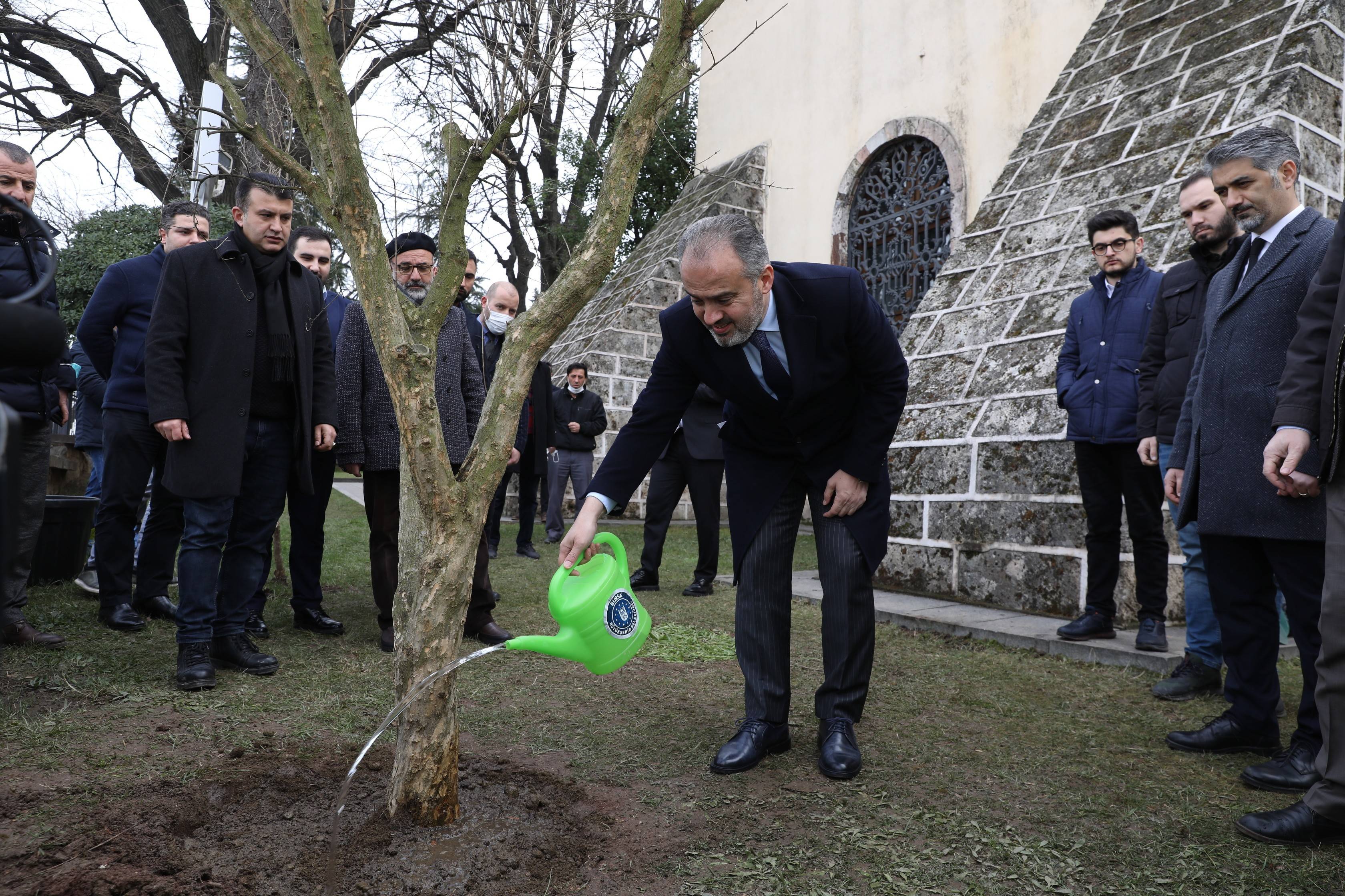 Osmanlı'nın savaş meydanında şehit olan tek padişahı Sultan 1. Murat'ın Bursa'daki türbesinin önüne nar ağacı dikildi.