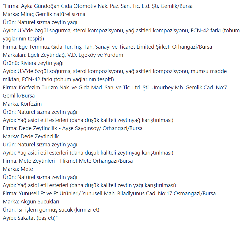 Tarım ve Orman Bakanlığı, vatandaşların sağlığı ile oynayan gıda teröristi firmaların isimlerini tek tek ifşa etti.