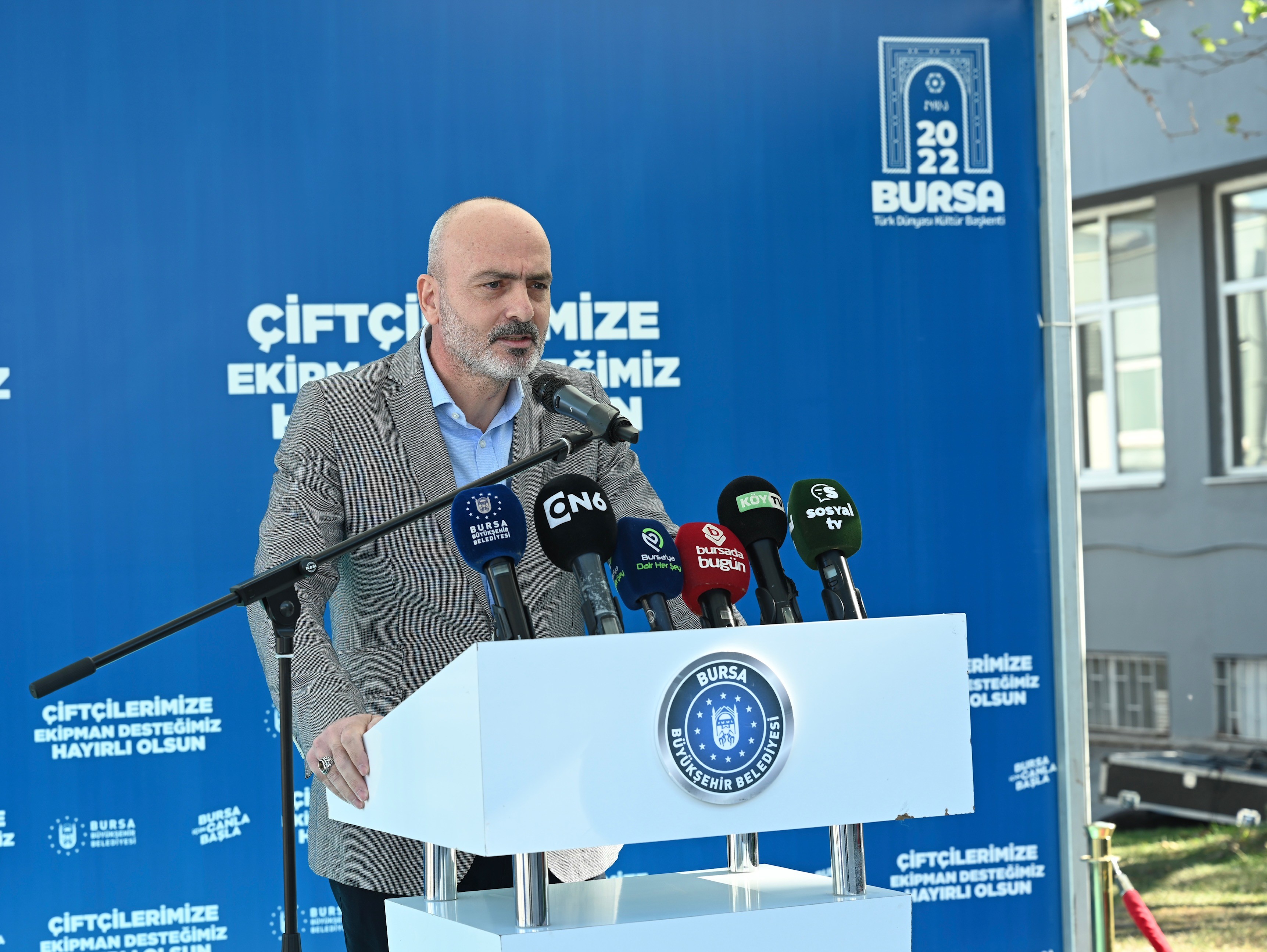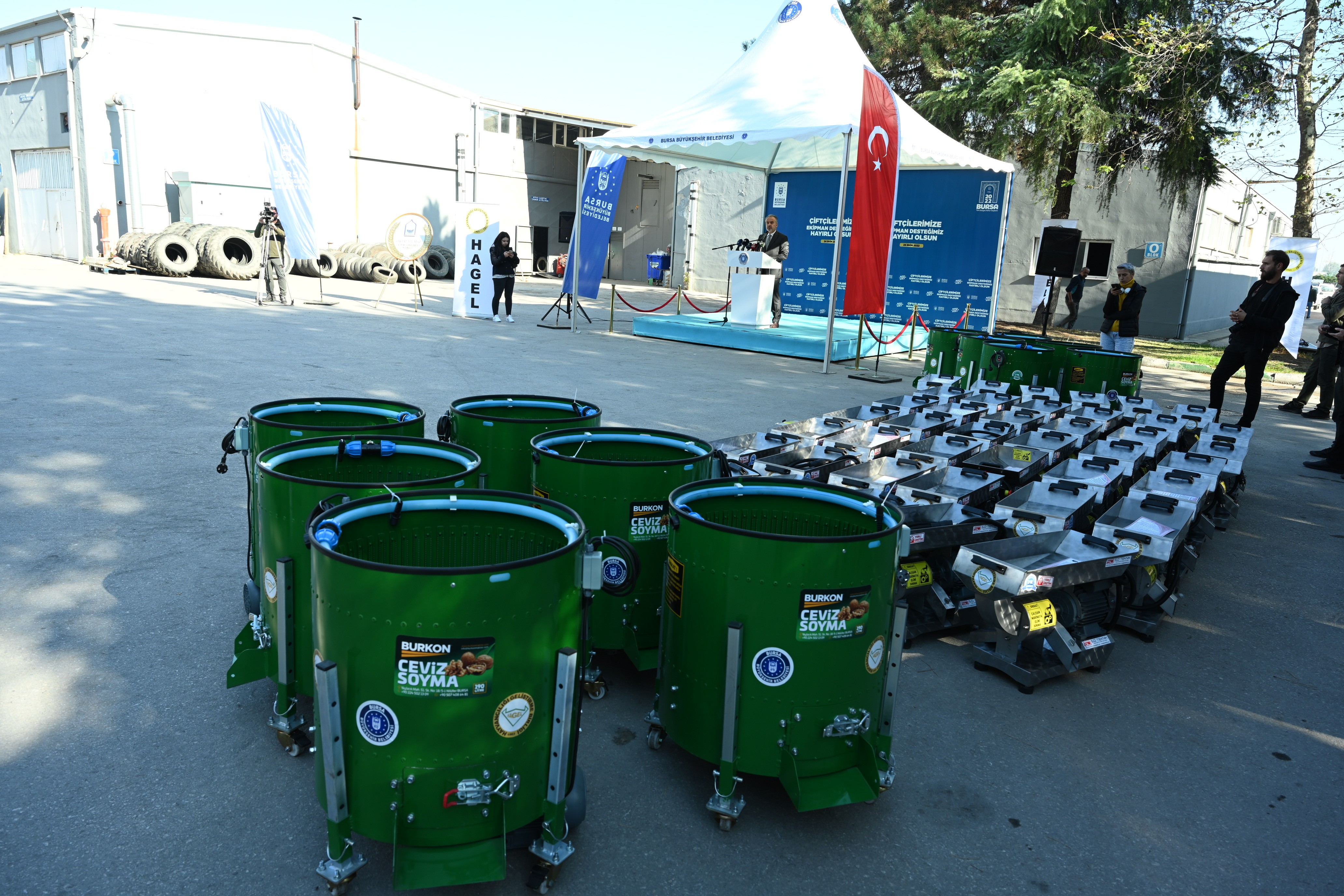 Bursa Büyükşehir Belediyesi’nin kırsal kalkınma hedefleri doğrultusunda Bursa İli Hayvancılığı Geliştirme Birliği (HAGEL) destekleriyle temin edilen tarım makineleri törenle çiftçilere dağıtıldı.