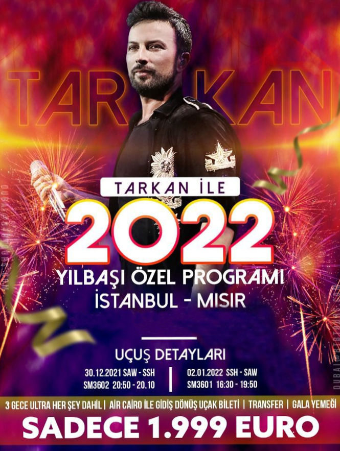 Günlerdir dolar yazılıyor ama doğrusu Euro hanımlar beyler. Tarkan 1 milyon Euro alacakmış. (...) 30-40 kişi şimdiden netleştirmiş Tarkan ile yılbaşı gecesine geçirmek için ödemeleri yapmış. Türkiye dışında Rusya, Ukrayna, Bakü, Dubai, Londra, Almanya'dan da o gece uçaklar kalkacakmış Mısır'a Tarkan için. (...)