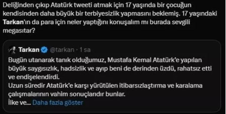 17 yaşındaki liseli bir gencin Mustafa Kemal Atatürk'ün resmiyle uygunsuz hareketler yapmasının ardından konuşan Tarkan,