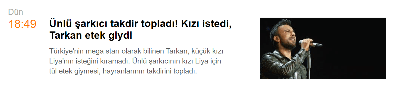 Kokuşmuş mahallenin kokan medyası pislik kusmaya devam ediyor. Bir zamanlar 'eşcinsel' olduğu iddiaları ortaya atılan şarkıcı Tarkan, kızı Liya'nın istediğini iddia ederek etek giydi ve bu görüntüleri sosyal medya hesabından paylaştı. Lağım medyası ise bu iğrençliği “ünlü şarkıcı takdir topladı” başlığıyla sayfalarına taşıdı.