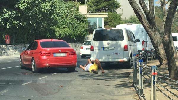 Sarıyer'de otomobilde eşi Barış A., ile tartışma yaşayan kadın, eşi inince kapıyı kilitledi. Uzun süre araca binmeye çalışan Barış A., araç hareket edince ölümden döndü. Otomobilin altında kalmaktan son anda kurtulan Barış A., daha sonra olay yerinden uzaklaştı.