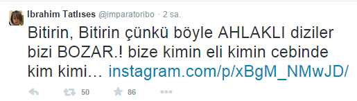Ünlü türkücü İbrahim Tatlıses, 'Urfalıyam Ezelden' dizisinin de yayından kaldırılmasına çok sinirlenmiş Twitter'dan takipçilerini Kanal D'nin CEO'su İrfan Şahin'i protestoya çağırmıştı. İbo'nun bu çabalarından sonra dizi yayın hayatına başka kanalda devam etmişti.