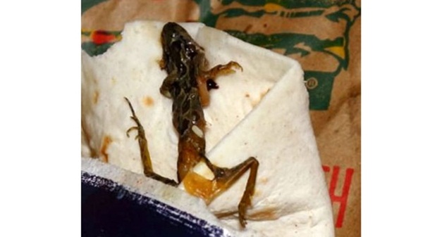 Dünyaca ünlü fast food restoran zincirinden tavuk dürüm alan küçük kız hayatının şokunu yaşadı. Dürümün içinden ölü kurbağa çıktı.