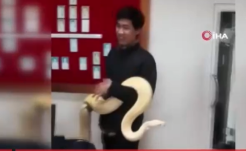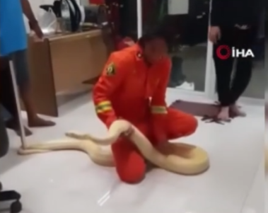 İşyerinde 4 metrelik dev piton bulundu! Meğer yılan evcilmiş