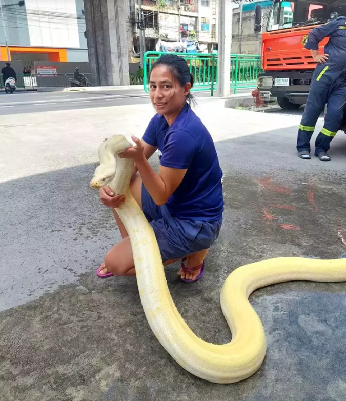 Bangkok'un Huamark bölgesi itfaiye ekipleri, dün bir sokakta dev bir piton görüldüğü üzerine ihbar aldı. Olay yerine gelen itfaiye ekipleri ile uzman bir ekip tarafından kısa sürede yakalanan yaklaşık 4 metre uzunluğundaki yılanın, zehirsiz ve egzotik bir tür olan albino pitonu olduğu belirtildi.