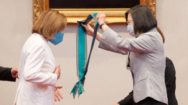 ABD Temsilciler Meclisi Başkanı Nancy Pelosi'ye Tayvan'ı ziyaretinde, ada otoriteleri tarafından "Şeref Madalyası" tevdi edildi.