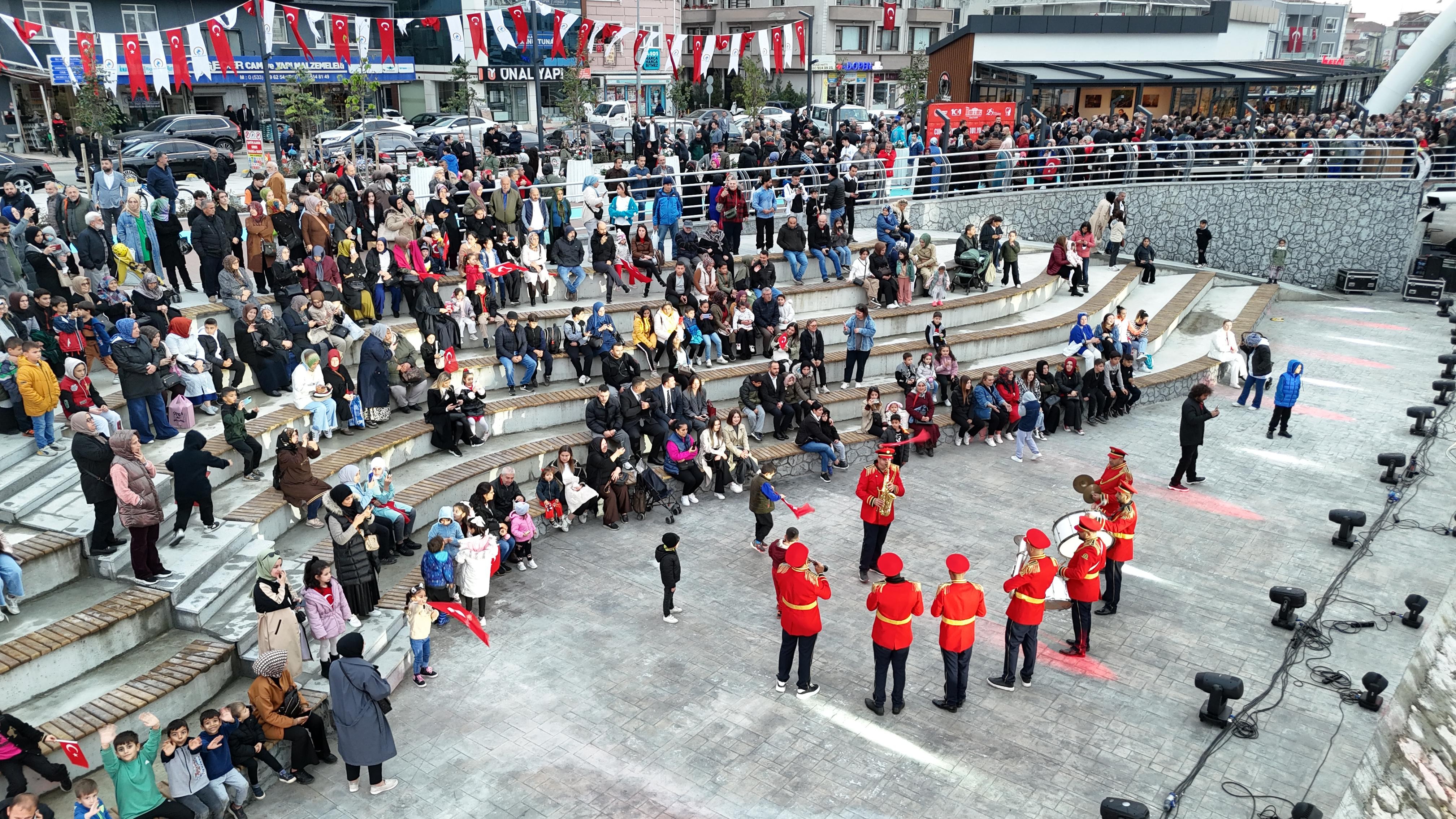 Belediye bandosu, Türk bayrakları ile donatılan ve yoğun kalabalıkla adeta şenlik alanına dönüşen ‘Asar Kemer Park’ amfi basamaklarında vatandaşlara mini bir konser verdi.